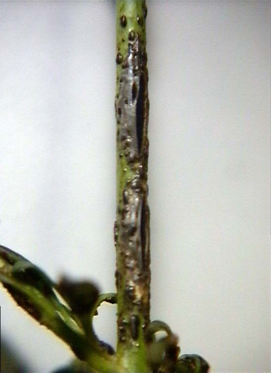 stem. Side shoots affected.