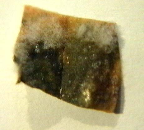 with Alternaria alternata. Note blackish spots and emerging fluid