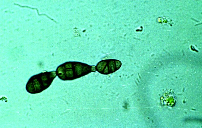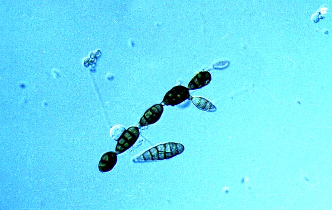of Alternaria alternata conidia. Note typical elongated shape and