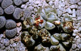 Lithops spp.- living stones- live in deserts in Southern Africa and are extremely well camouflaged against herbivores. | |